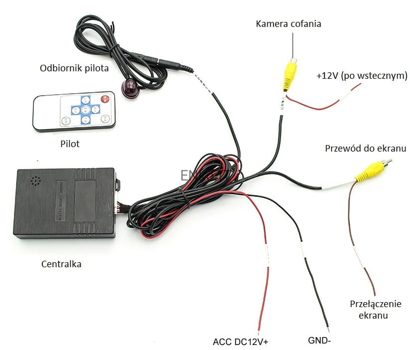 Kamery cofania + przednia nie znajdują się w zestawie.