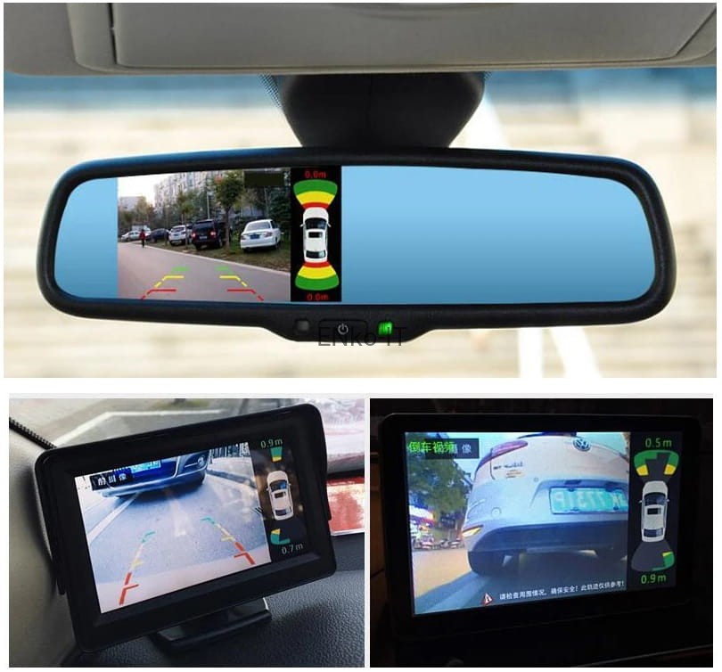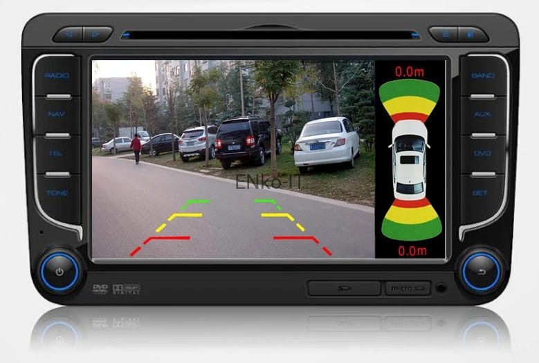 1. Po wrzuceniu wstecznego automatycznie wyświetla obraz z kamery cofania + wizualizacja czujników (przód tył)
